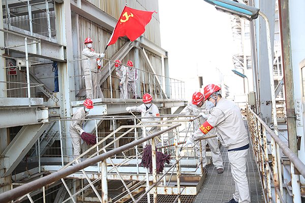 14日下午,在文明生產提升活動啟動儀式上,該公司副總經理武旭升宣布活動啟動并提出工作要求。按照“分批次、定地點、分任務、找對接”的活動方案要求,150余名黨員干部職工三天分成三個批次,在生產對接人員的帶領下,整齊有序進入生產現場,清理衛生死角、擦拭欄桿鋼梁、整理設備標牌,對兩臺鍋爐的設備、管道及步道區域等進行了全方位的清潔。