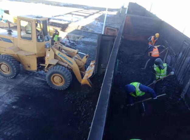 工作人員及時清理車廂殘煤確保裝車站定量裝車準確無誤