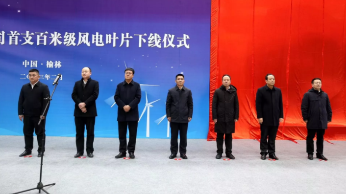 2月8日,葉片榆林公司首支百米級風電葉片在定邊成功下線。