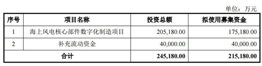 12月12日,金雷科技股份公司(簡稱“金雷股份”)發布《向特定對象發行股票募集說明書》(修訂稿),擬募集資金21.52億元,用于海上風電核心部件數字化制造項目(17.52億元)和補充流動資金(4億元)。