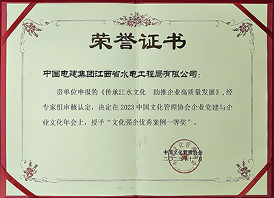 中國電力網訊 (通訊員 趙勇) 日前,2023中國文化管理協會企業黨建與企業文化年會在杭州舉辦。中國電建集團江西省水電工程局有限公司(以下簡稱“江西水電”)申報的《傳承江水文化 助推企業高質量發展》案例獲評中國文化管理協會“文化強企優秀案例一等獎”,申報的《企業文化手冊》獲評“最美品牌之聲”銀獎代言作品。這是繼獲評全國工程建設行業企業文化最佳案例之后,又一次獲獎。