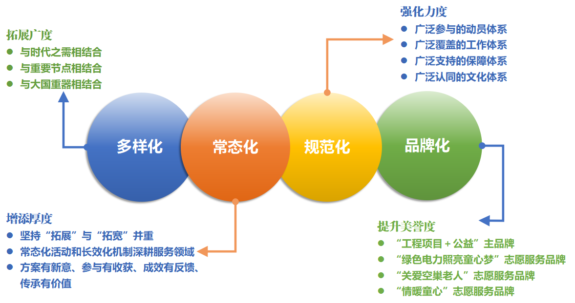 以品牌化提升美譽(yù)度。江蘇院志愿服務(wù)堅(jiān)持以品牌化擴(kuò)大影響力,在實(shí)踐中提煉出“工程項(xiàng)目+公益”主品牌和三大子品牌的“1+3”品牌矩陣。聚焦重點(diǎn)工程,創(chuàng)建“綠色電力照亮童心夢(mèng)”服務(wù)品牌;聚焦老年群體,打造“關(guān)愛空巢老人”服務(wù)品牌;聚焦少兒群體,沉淀出“情暖童心”服務(wù)品牌。