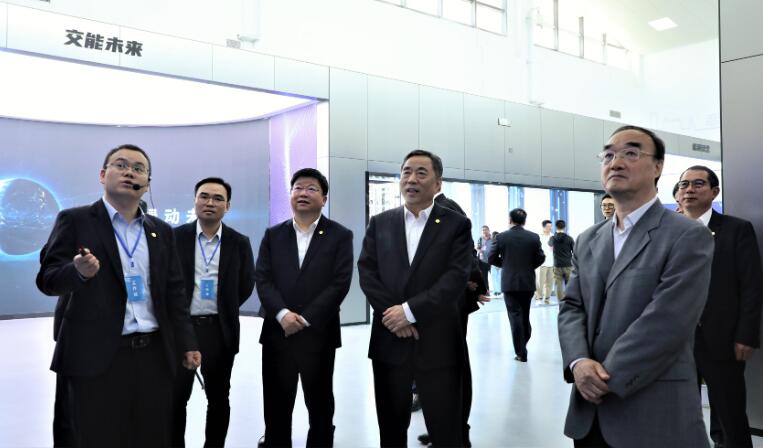 宋海良一行參觀了金鄉零碳智慧服務區、中國能建交能融合展廳,同項目管理人員、技術人員進行交流,仔細觀看沙盤模型、智慧管理系統演示、光伏發電及儲能裝備、電動汽車充換電展示,對項目建設情況給予了高度肯定。