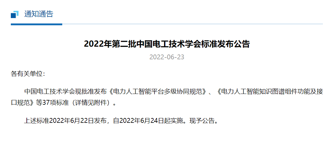 2022年6月24日,由國網信通產業集團信通研究院牽頭制定的中國電工技術學會標準《電力碳計量服務終端技術規范》正式發布實施。