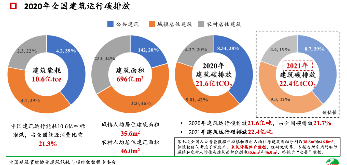 報(bào)告披露,2021年全國(guó)建筑運(yùn)行碳排放預(yù)估值為22.4億噸,比2020年略有增加。圖/報(bào)告截圖