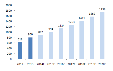 垃圾焚燒發(fā)電市場(chǎng)規(guī)模預(yù)測(cè)(億元)