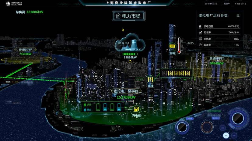 “比如商務樓里的空調、動力、照明設備和我們的系統相連接,在需要時可以通過控制設備功率和起停狀態,來調節整棟樓的用電負荷”,上海市電力需求響應中心主任鄭慶榮介紹說,如果一棟樓一次性降低負荷500千瓦,可以視其為一臺500千瓦發電能力的機組。