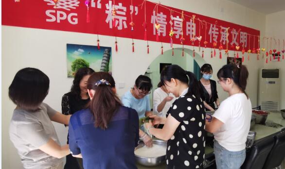 職工餐廳活動(dòng)現(xiàn)場(chǎng),一片歡聲笑語、喜慶祥和的畫面,有手工制作特長(zhǎng)的女職工手把手地教大家包粽子,大家圍坐在一起,學(xué)得認(rèn)真、干得起勁、忙得不亦樂乎。折葉、填米、放棗、成形、纏線。剛起手學(xué)做的員工,做出了形狀怪異的“棕子”,使大家樂開懷。有特長(zhǎng)的員工做的粽子造型規(guī)則時(shí),又忍不住小得意,將自己與滿意的“作品”合影留念,小小的粽子傳遞著濃濃的同事情誼,活動(dòng)使大家在相互協(xié)作的包粽子過程中,增進(jìn)了友情,拉近了距離,同享節(jié)日歡樂。
