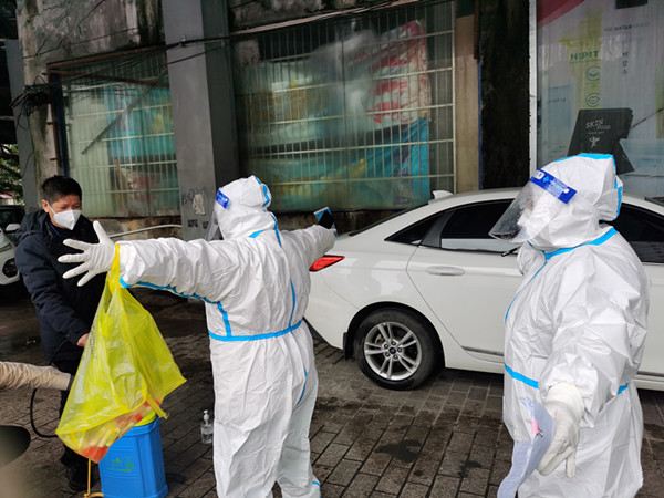 “您好,您需要的菜品我們已經買回來了,放在您的家門口,您方便了出來取一下。”這是青年黨員覃婕這些天來重復最多的話,在中興小區還有很多和覃婕一樣的“青春面孔”,他們主動充當小區居民的跑腿員,為大家采買送遞,正是因為有了他們的跑前跑后,居民們的基本生活物資才得以正常供應,才能夠更安心的“宅”在家里,說起他們,社區和居民都是一片褒獎之詞。