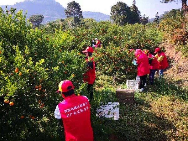 而在蜜桔的的采摘和銷售方面,由于翠云村生產發展主要以南豐蜜桔為主,但是對于貧困戶來說,蜜桔的采摘和銷售都是一大難題,常常因為勞動力不足采摘不及時而損失不少,汪彬得知后組織黨員服務隊和青年志愿者們幫助采摘,并聯系網絡微商進行上村收購,同時通過“娘家”國網南豐縣供電公司全力開展扶貧產品進食堂活動、國網電商“慧農幫”線上平臺等擴大了該村蜜桔銷售渠道。