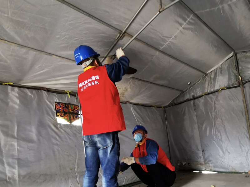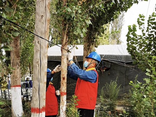 還沒休息幾分鐘又接到伊寧縣奎太買里村委會電話,“夏師傅,村委會要在村口建一個疫情檢查點,需要接電照明,你們趕緊來處理一下。”黨員服務隊隊員夏文亮與他的搭檔做好消毒工作后,帶上安全工器具立即前往村委會防疫點,經過半個多小時的工作,村委會防疫點帳篷內照明燈亮起來了。