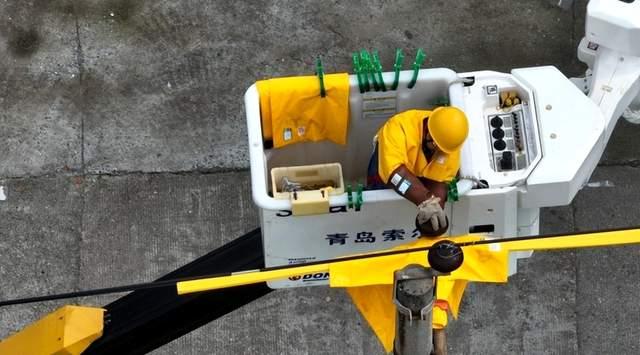 6月21日,在上饒市信州區拍攝的10千伏道口線不停電作業施工現場。