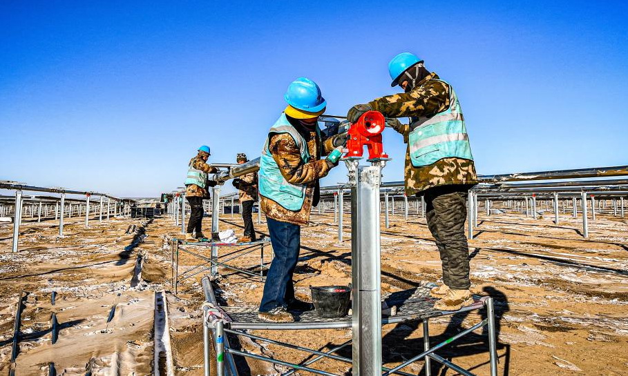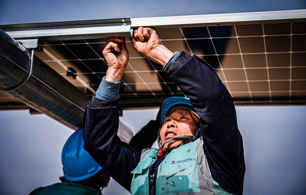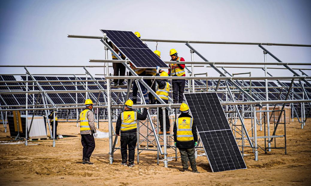 蒙陜寧三省交界的毛烏素沙地腹部,國家能源集團國電電力蒙西鄂爾多斯采煤沉陷區300萬千瓦光伏基地項目建設如火如荼。作為國家第二批以沙漠、戈壁、荒漠地區為重點的大型光伏基地項目之一,10.5萬畝的“光伏海洋”每年將把近57億度綠色電能從蒙西戈壁輸送至黃海之濱,滾滾電流跨越1300多公里長途跋涉,將有效緩解山東這個東部沿海工業大省的電力缺口,為東部地區的經濟社會發展提供強大的綠色能源保障。該項目已完成175萬千瓦容量樁基施工,65萬千瓦容量支架施工,25萬千瓦容量組件安裝,1號升壓站已具備并網條件。