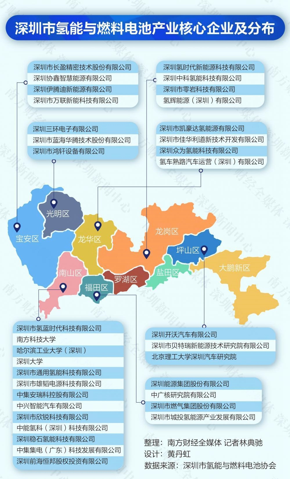 南方財經全媒體記者梳理調研發現,深圳市氫能相關企業主要分布在南山區、寶安區、龍華區和龍崗區。