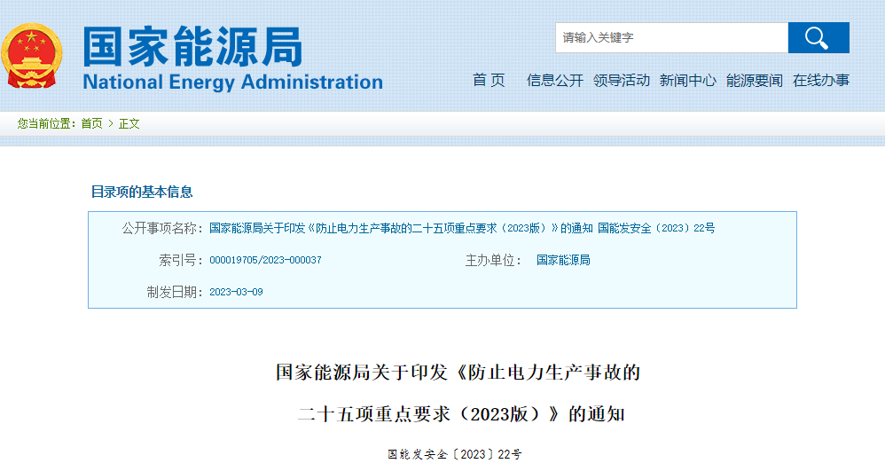 國家能源局關于印發《防止電力生產事故的二十五項重點要求(2023版)》的通知