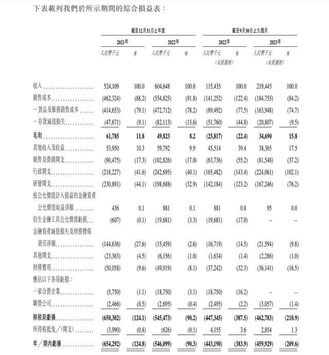財報顯示,2021年、2022年及2023年前9個月,重塑能源實現收入分別為約5.24億元、6.05億元、2.19億元;同期公司虧損分別為約6.54億元、5.46億元、4.60億元,合計近17億元。