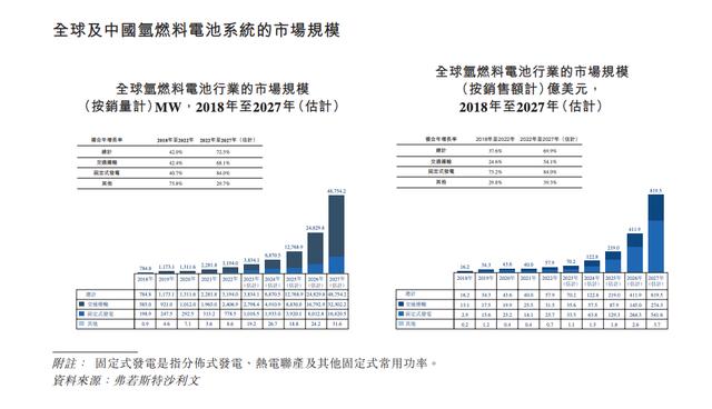 據弗若斯特沙利文的資料,按2022年已售重卡氫燃料電池系統的總輸出功率計,公司位居中國氫燃料電池系統市場第一,市場份額為25.9%。