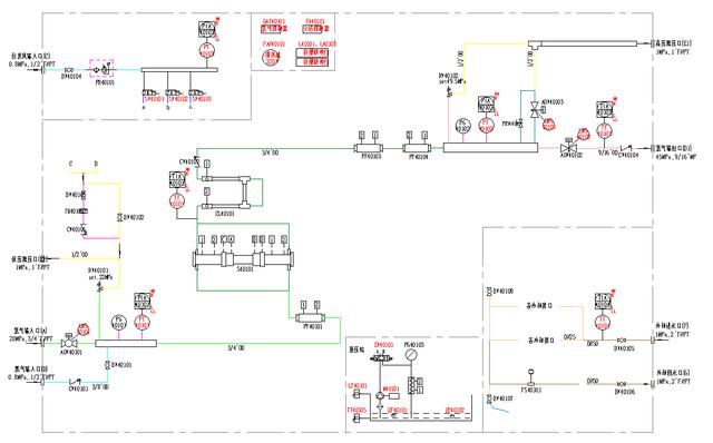 客戶原方案使用1200及本體擴展模塊,替代方案為1200+MR30分布式IO,成本降幅為45%;開關量輸入模塊主要用于連接按鈕、加壓機運行及故障信號、閥門開到位及關到位信號;開關量輸出主要用于控制指示燈、電磁閥開關、壓縮泵啟停;模擬量輸入模塊主要用于采集罐體壓力、管道壓力、壓縮機出入口壓力及溫度、電機溫度等。