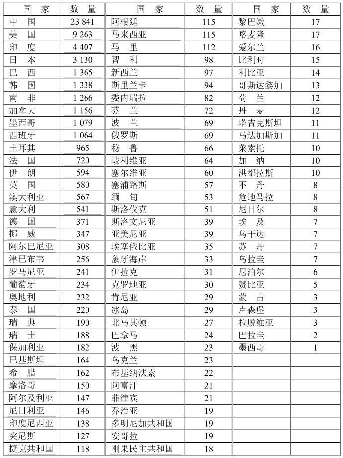 本數(shù)據(jù)來(lái)自國(guó)際大壩委員會(huì)的統(tǒng)計(jì),根據(jù)2020年4月的登記注冊(cè),全球現(xiàn)有大壩數(shù)量為58 713座水壩,其中中國(guó)占全球總量的23841/58713=40.6%。