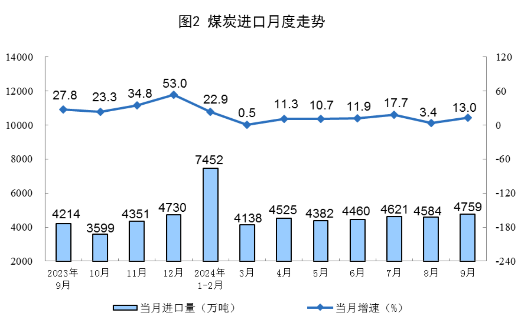 進口數據來源于海關總署,其中2024年9月份數據為快訊數據。