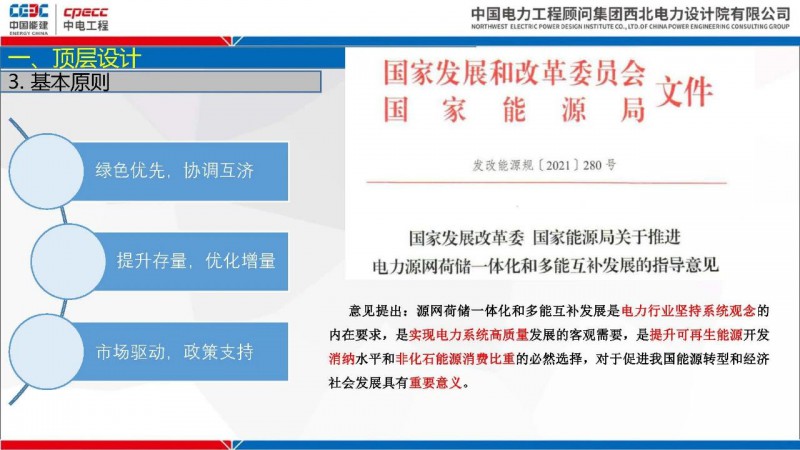 會上,中國能建西北電力設計院新能源與市政工程分院副設計總工程師李娜做 碳達峰碳中和背景下“推進一體化”項目開發與設計思考 演講,主要介紹了: