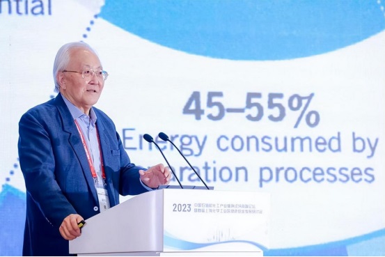 中國科學院院士、清華大學教授費維揚分析了“雙碳”面臨的機遇與挑戰。費維揚介紹了節能減碳的重要途徑——過程強化。過程強化是在化學工程科學理論和實驗研究的基礎上,創造性地用更小的,更便宜的和更高效的設備和工藝來代替龐大的,貴的和耗能的設備和工藝,以期大幅度地提高效率、節能減排、提質增效。包括信息技術的應用、新催化劑、耦合技術、超重力技術、微化工技術、新型塔內件和超臨界技術。費維揚指出,技術創新所帶來的實際經濟收益不會源自那些炫目的想法,至少在近期內如此。而是源自正在趨于成熟的新興技術與存在了數十年的傳統技術的巧妙結合。這和利用過程強化方法,節能減碳、提質增效的理念完全一致,這種理念對石化產業的綠色低碳發展具有重要的意義。