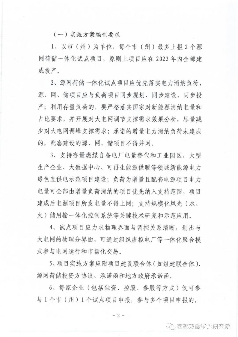 根據文件,電力多能互補試點由各地結合“光伏+”綜合利用行動、新能源電站升級改造和沙漠、戈壁、荒漠大型風電光伏基地建設等工作自行組織。源網荷儲項目則以市(州)為單位,每個市最多可申報2個項目,需在2023年底建成。