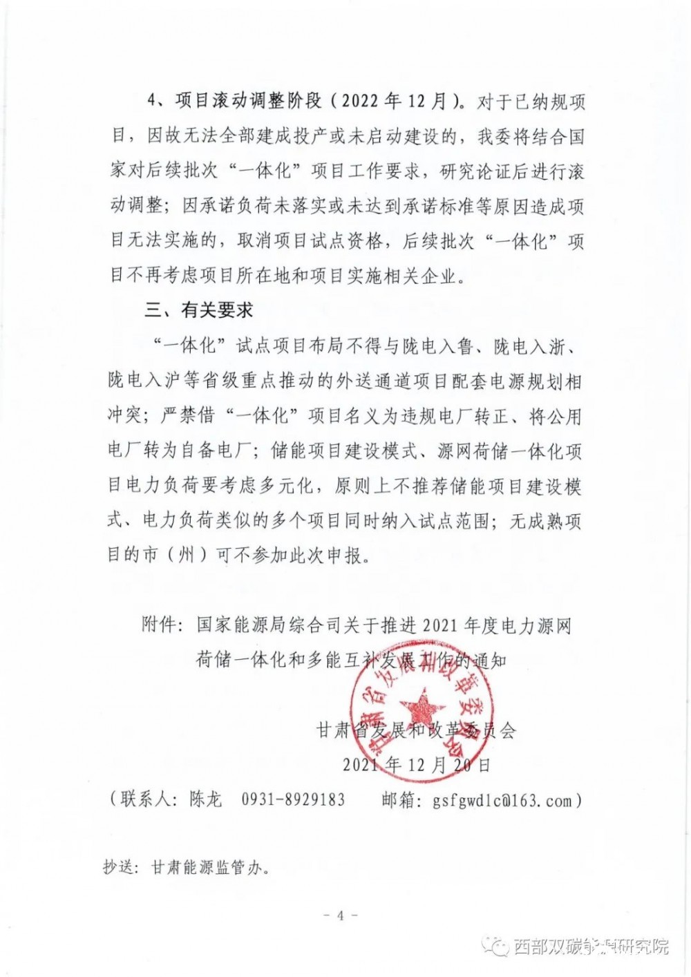 12月20日,甘肅省發改委印發《關于組織申報“十四五”電力源網荷儲一體化和多功能互補發展首批試點項目的通知》,就項目申報有關事項給出具體指導。
