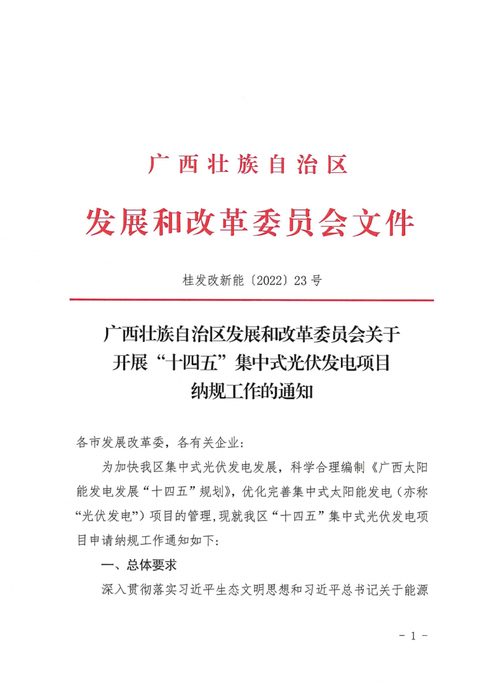 1月8日,廣西發改委印發《開展"十四五"集中式光伏發電項目納規工作的通知》,就建立集中式光伏規劃項目庫給出指導意見。
