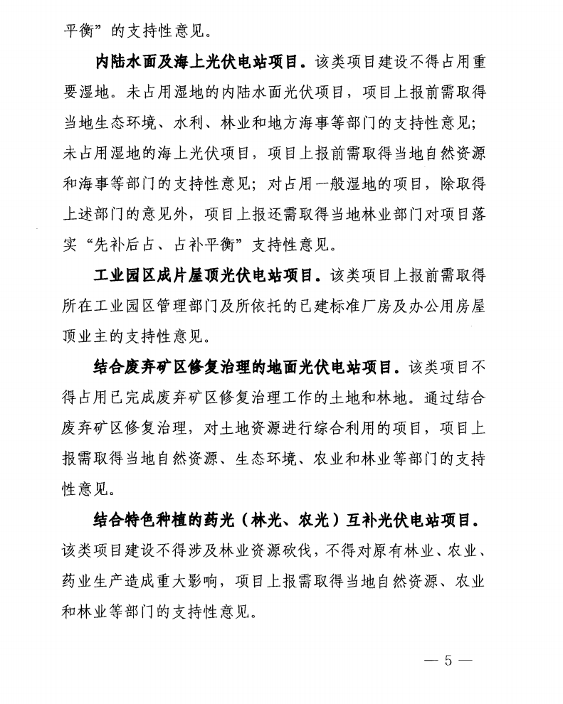 1)近海養殖漁光互補、2)內陸水面及海上光伏、3)工業園區成片屋頂光伏、4)結合廢棄礦區修復治理的地面光伏、5)結合特色種植的藥光(林光、農光)互補。