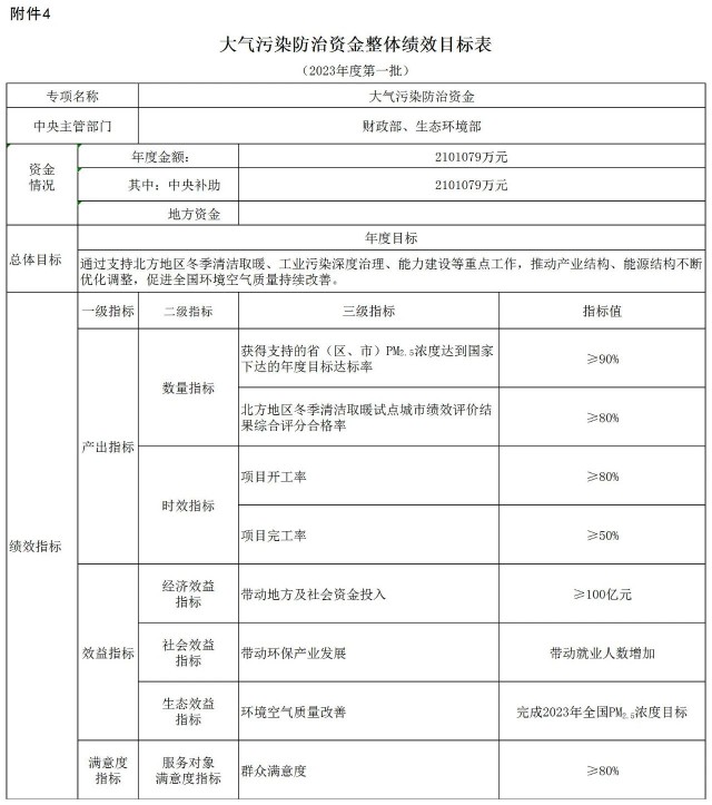 為支持大氣污染防治工作,促進大氣質量改善,現下達你省(自治區、直轄市、新疆生產建設兵團,以下簡稱省)2023年大氣污染防治資金,用于支持開展減污降碳等方面相關工作,并就有關事項通知如下: