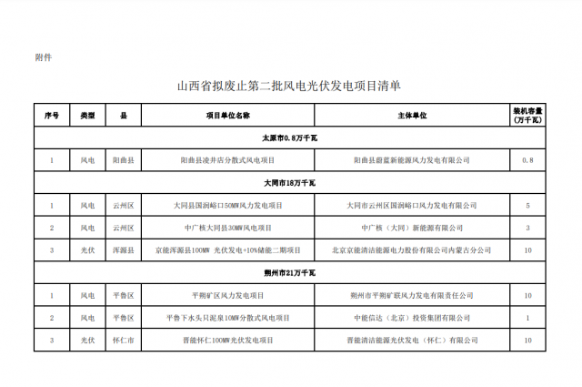 附件:山西省擬廢止第二批風電光伏發電項目清單.pdf