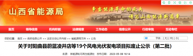 為加快推進新能源“十四五”規劃建設進度,實現我省新能源產業高質量發展,我局組織各市能源局對2021年及之前項目單位投資不積極、確定無法建設的風電光伏發電項目進行了梳理。相關地市上報擬廢止項目清單,經我局匯總,擬將陽曲縣蔚藍凌井店等19個總規模100.8萬千瓦風電光伏發電項目予以廢止,現予公示。相關企業如有異議,請向相關市能源局提出書面意見,并在公示期(5個工作日)內,由市能源局上報省能源局。