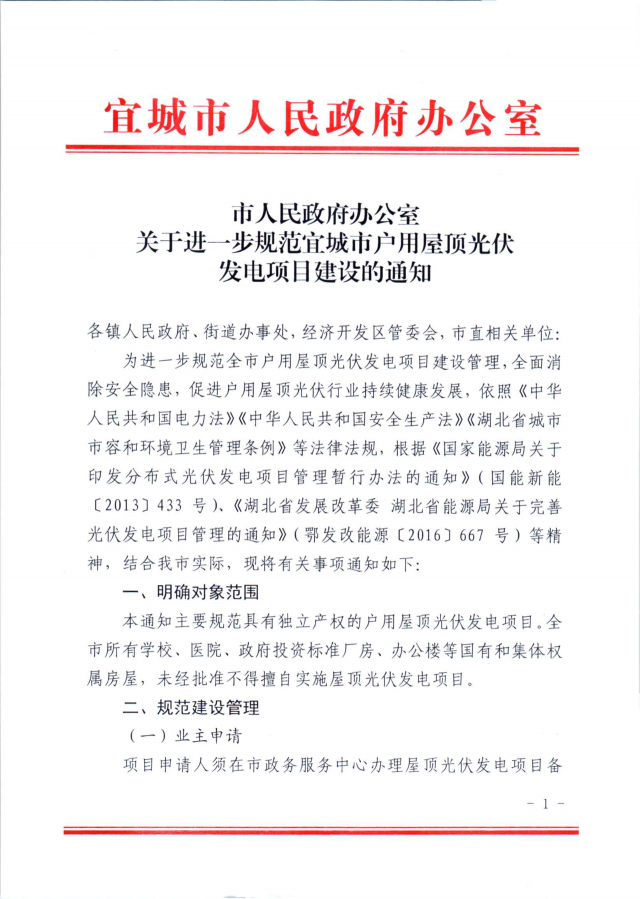 近日,湖北宜城發布《關于進一步規范宜城市戶用屋頂光伏發電項目建設的通知》,明確指出全市所有學校、醫院、政府投資標準廠房、辦公樓等國有和集體權屬房屋,未經批準不得擅自實施屋頂光伏發電項目,而戶用光伏項目并網需要8個部門的簽字。