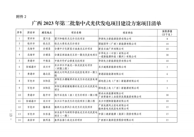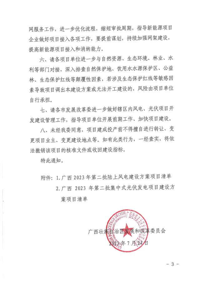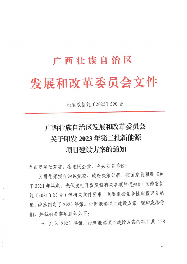 近日,廣西壯族自治區發展和改革委員會印發2023年第二批新能源項目建設方案的通知。
