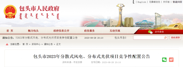 包頭市2023年分散式風電、分布式光伏項目競爭性配置公告
