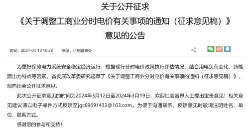 關(guān)于調(diào)整工商業(yè)分時(shí)電價(jià)有關(guān)事項(xiàng)的通知(征求意見稿)