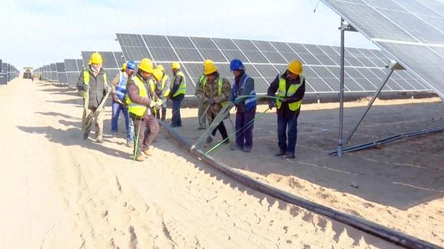 豐富的土地、光照資源以及強大的電網結構,為高臺縣發展光伏產業提供了得天獨厚的條件。走進位于高崖子灘已經建成并網的杭泰新能源有限公司20萬千瓦光伏發電項目現場,一塊塊光伏板為荒坡披上了藍色“鎧甲”,在陽光的照耀下“波光粼粼”,工人們各司其職,整個電廠運行平穩。“我公司裝機容量是200兆瓦,配套建設40兆瓦/80兆瓦時的儲能電站一座,2024年截至目前的發電量是2.3億千瓦時,預計2024年產值是3500萬元。”高臺杭泰200MW光伏電站站長陳祎介紹道。