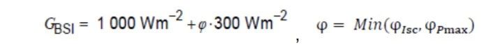 增加雙面組件的熱循環測試注入的電流要求,可根據電流與輻照度的線性關系,按照如下公式計算: