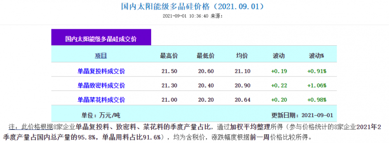 9月1日,硅業分會發布多晶硅最新價格信息。