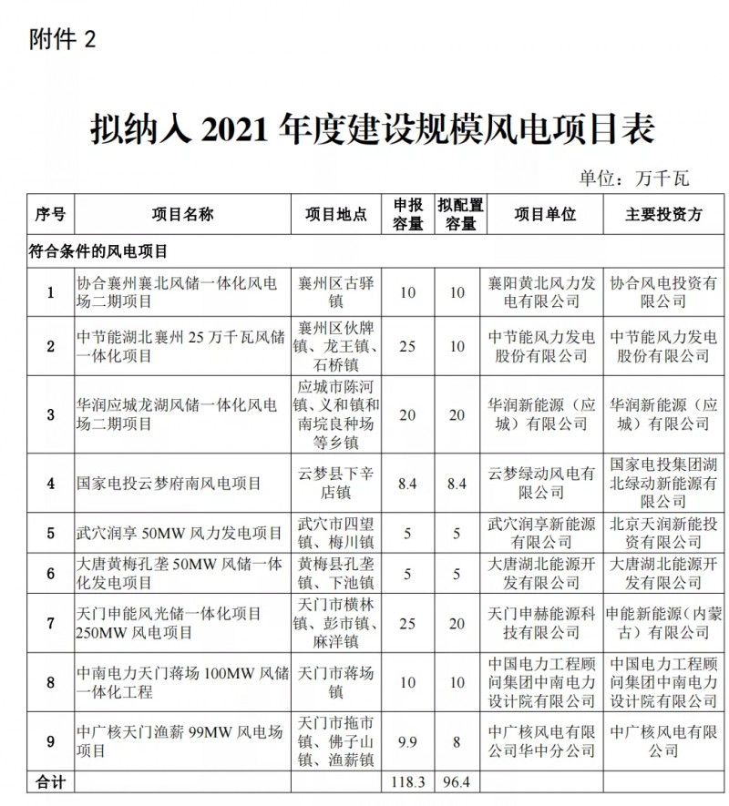 2)9個風電項目,總規模118.3萬千瓦 ,擬配置規模96.4萬千瓦;