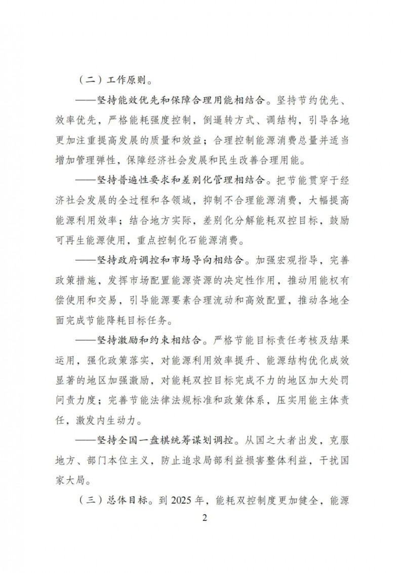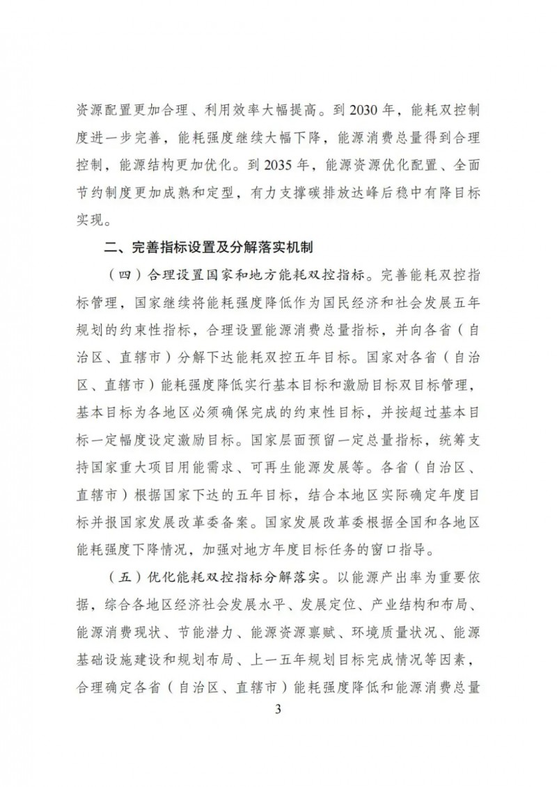 到2025年,能耗雙控制度更加健全,能源資源配置更加合理、利用效率大幅提高。到2030年,能耗雙控制度進一步完善,能耗強度繼續(xù)大幅下降,能源消費總量得到合理控制,能源結(jié)構(gòu)更加優(yōu)化。到2035年,能源資源優(yōu)化配置、全面節(jié)約制度更加成熟和定型,有力支撐碳排放達峰后穩(wěn)中有降目標實現(xiàn)。