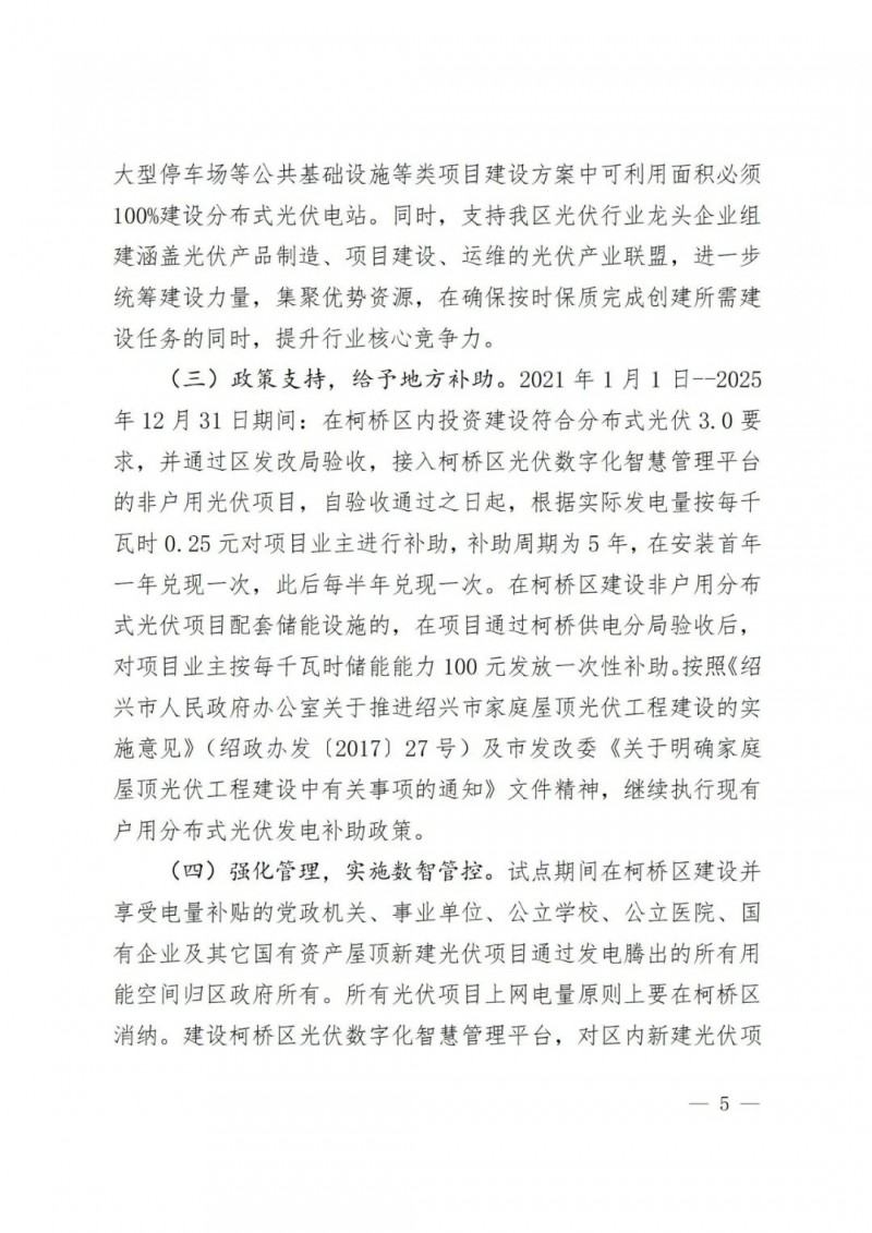 一、柯橋區整區屋頂分布式光伏開發試點實施方案