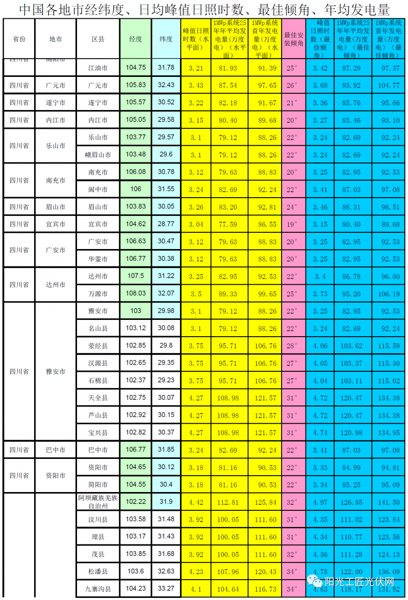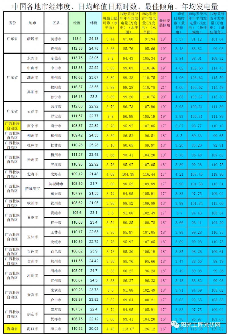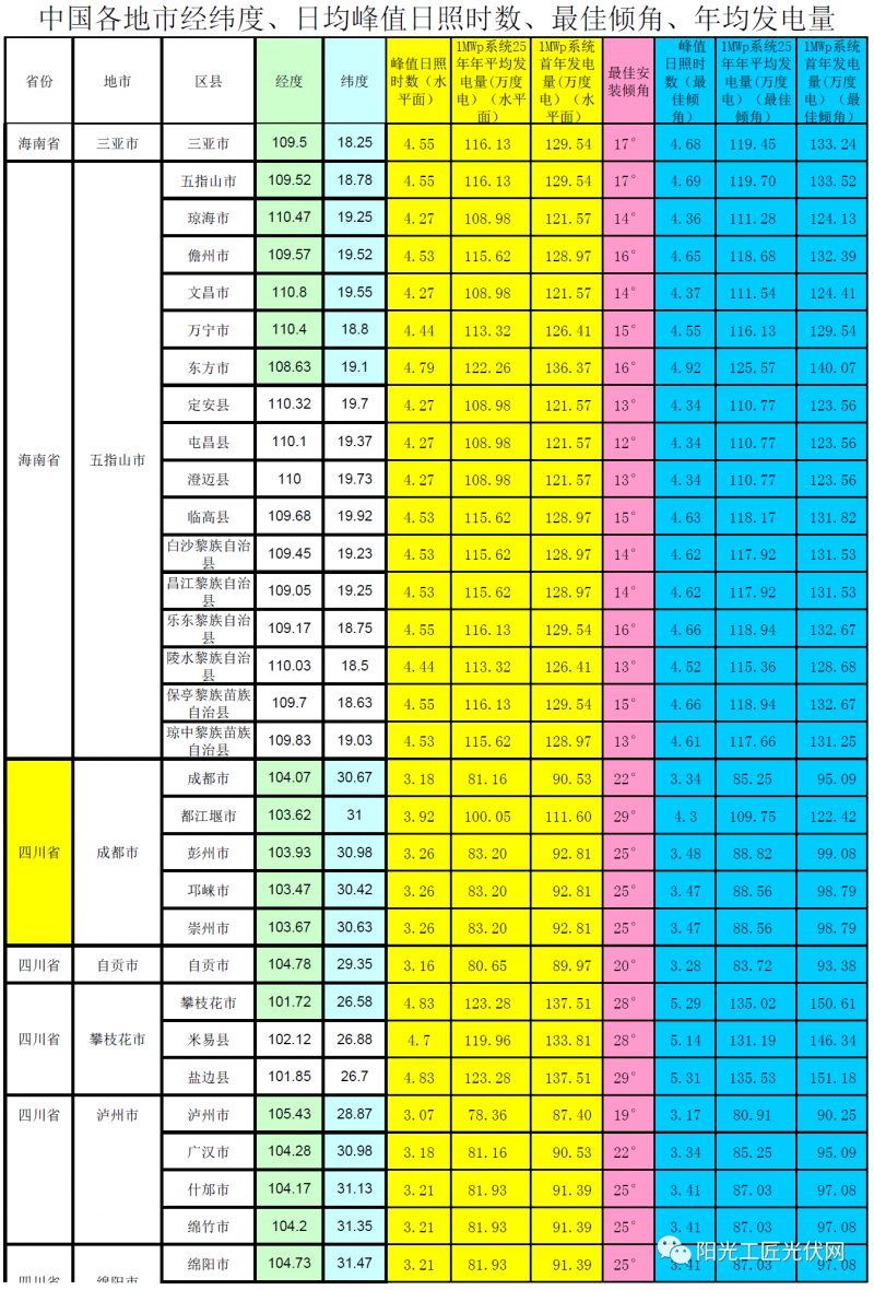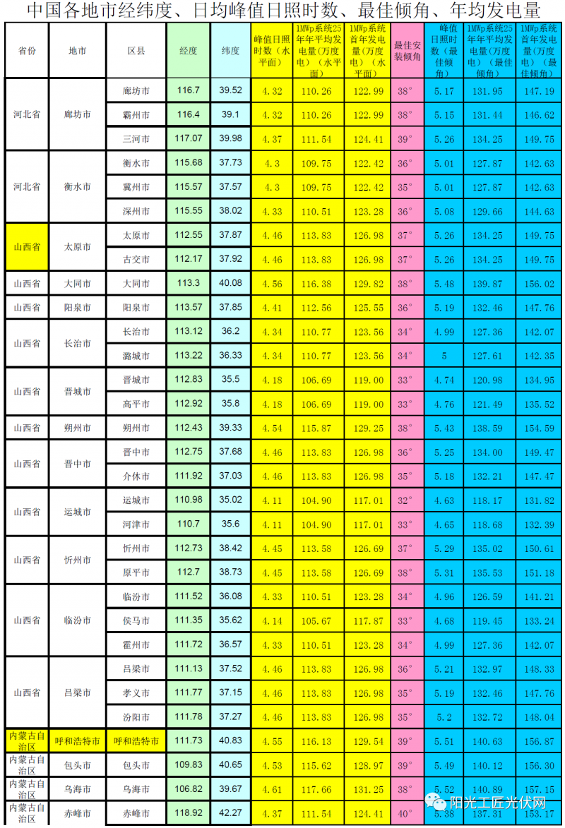 4、以1MWp組件的裝機容量作為發電量計算依據