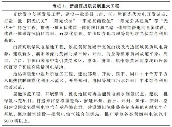 沿黃綠色能源廊道。依托我省黃河流域干支流沿線及周邊區域優質可再生能源資源,建設豫北黃河北岸、豫東黃河故道、豫中南引黃受水區、黃河兩岸淺山丘陵區等百萬千瓦級風電基地和一批千萬平方米地熱供暖規模化利用示范區,實施豫西、豫北等“可再生能源+儲能”示范項目,有力支撐黃河流域生態保護和高質量發展。