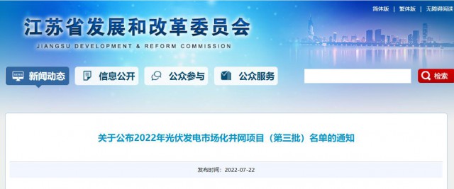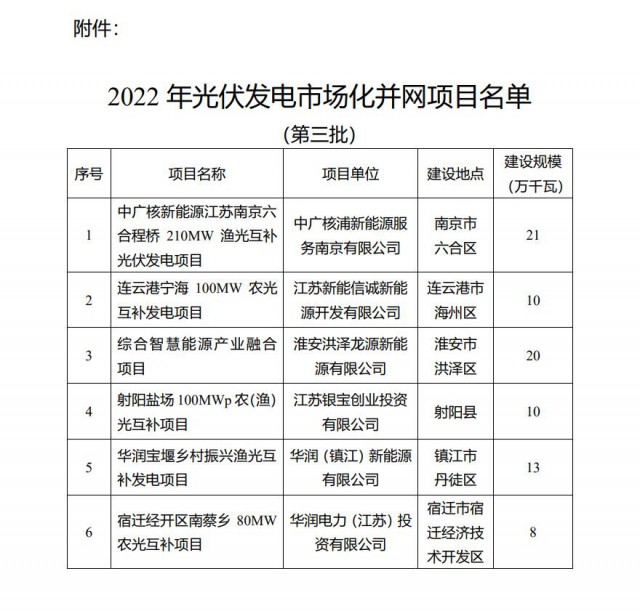為積極貫徹落實(shí)國(guó)家“碳達(dá)峰碳中和”長(zhǎng)期目標(biāo),推動(dòng)我省光伏發(fā)電平穩(wěn)有序發(fā)展,按照《省發(fā)展改革委關(guān)于開展2022年光伏發(fā)電市場(chǎng)化并網(wǎng)項(xiàng)目開發(fā)建設(shè)的通知》(蘇發(fā)改能源發(fā)〔2022〕350號(hào))有關(guān)要求,現(xiàn)將我省2022年光伏發(fā)電市場(chǎng)化并網(wǎng)項(xiàng)目(第三批)名單予以公布。