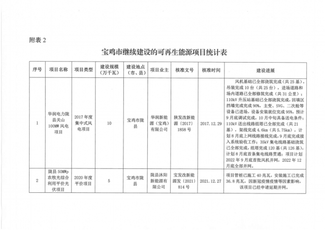 2.渭南市繼續(xù)建設(shè)的可再生能源項(xiàng)目統(tǒng)計(jì)表
