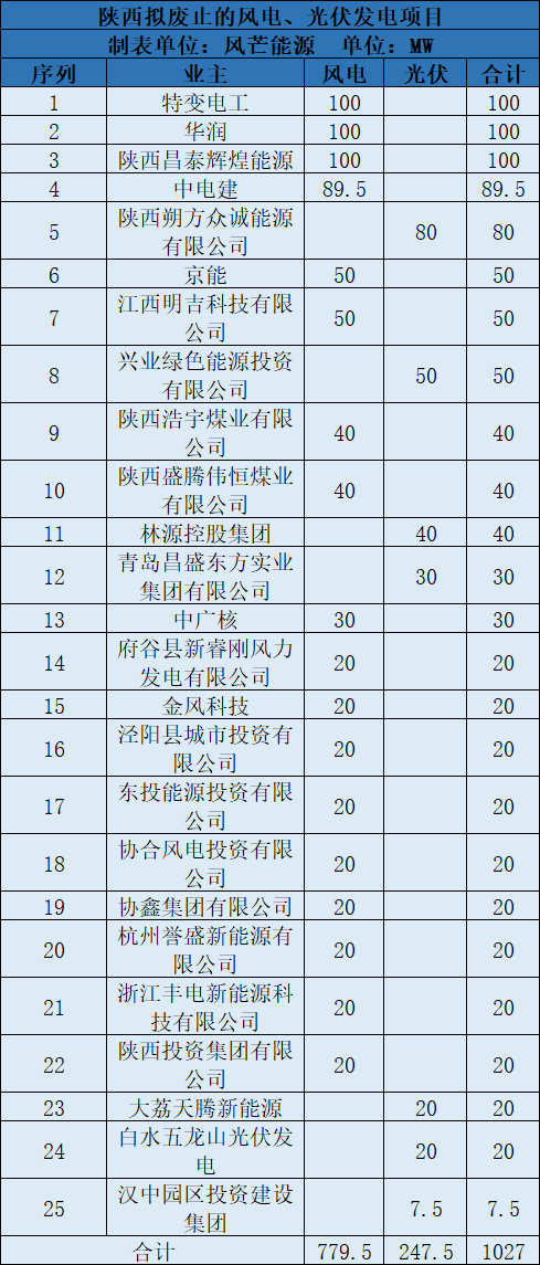 根據(jù)整理,從業(yè)主角度看,目前特變電工、華潤、陜西昌泰輝煌能源分別被廢止了100MW風(fēng)電項(xiàng)目。