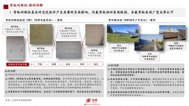 背板耐候性差會對光伏組件產生顯著的負面影響,非氟背板相對表現較弱,含氟背板表現廣受業界認可。