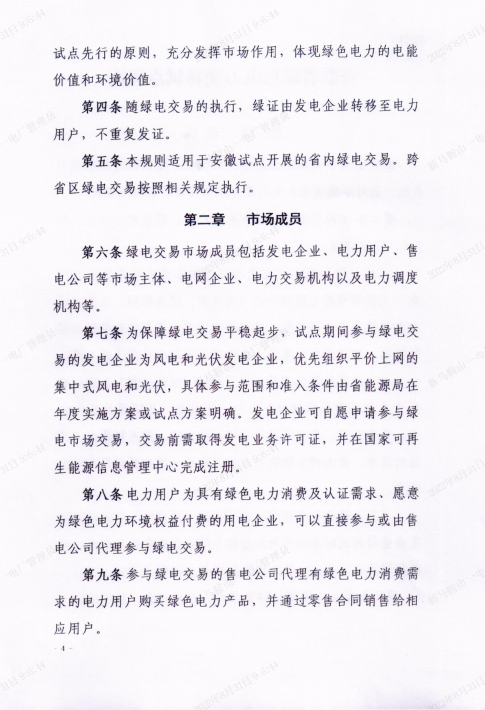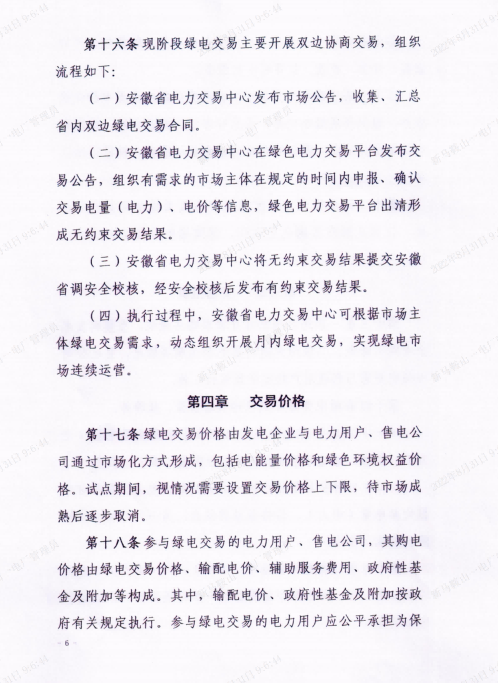 近日,華東能監(jiān)局、安徽省能源局發(fā)布《安徽省綠色電力交易試點規(guī)則》。參與綠電交易的電力用戶、售電公司,其購電價格 由綠電交易價格、輸配電價、輔助服務(wù)費用、政府性基金及附加等構(gòu)成。其中,輸配電價、政府性基金及附加按政府有關(guān)規(guī)定執(zhí)行。參與綠電交易的電力用戶應(yīng)公平承擔(dān)為保障居民、農(nóng)業(yè)等優(yōu)購用戶電價穩(wěn)定產(chǎn)生的新增損益分?jǐn)傎M用。